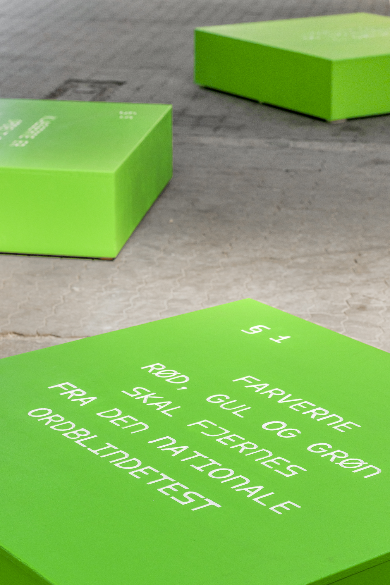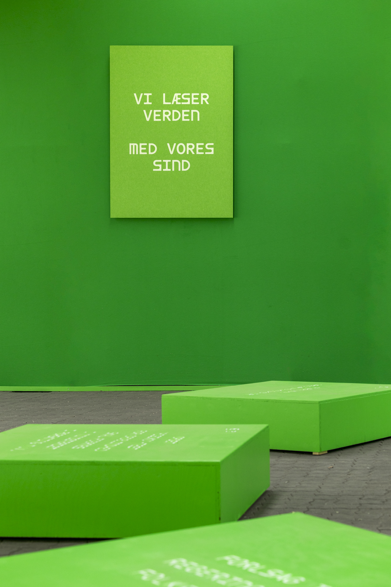 On the surrounding seating, you will find Dyslexics with Pride (2024), an artistic manifesto, written as a Danish legislative proposal.